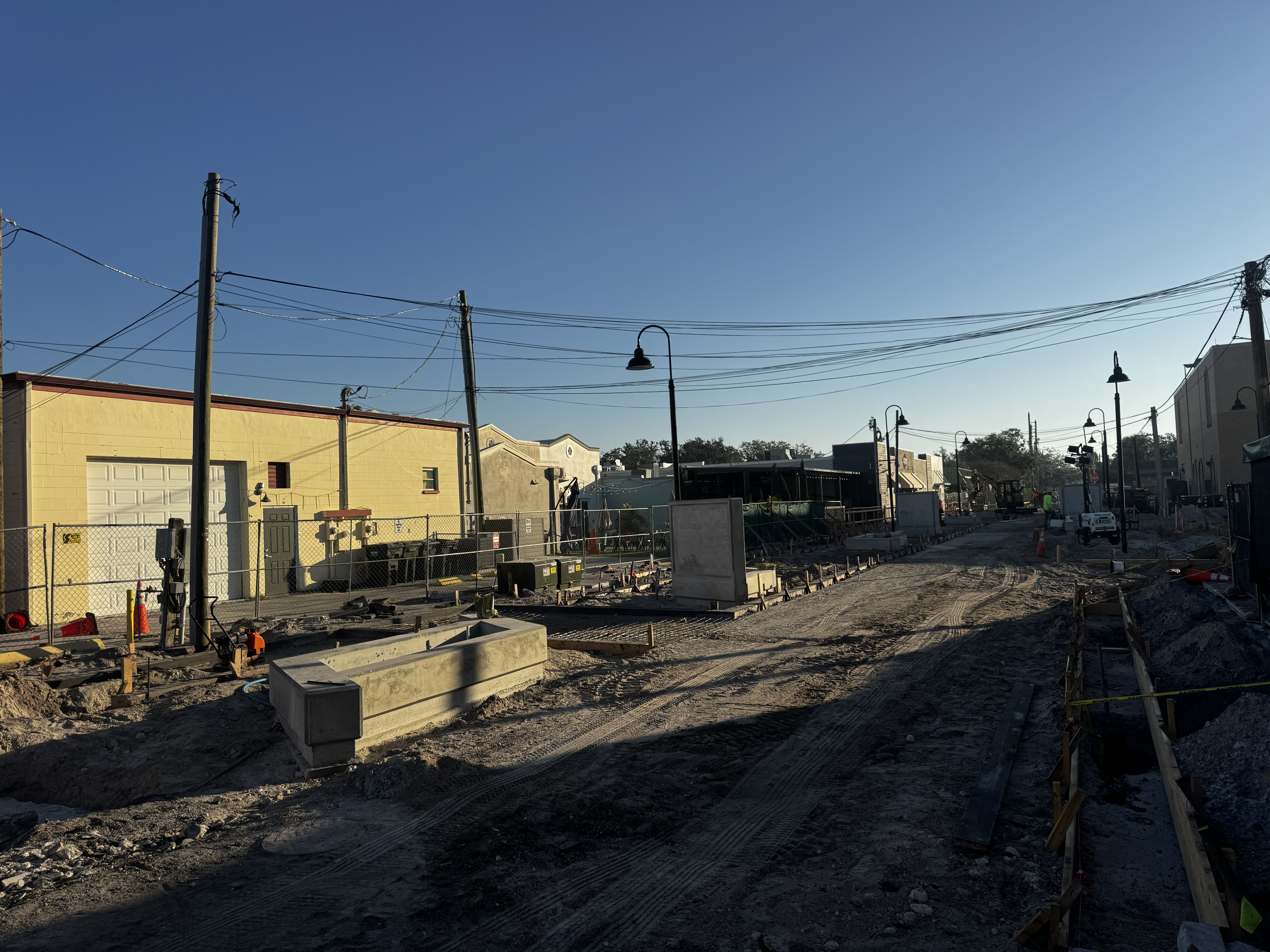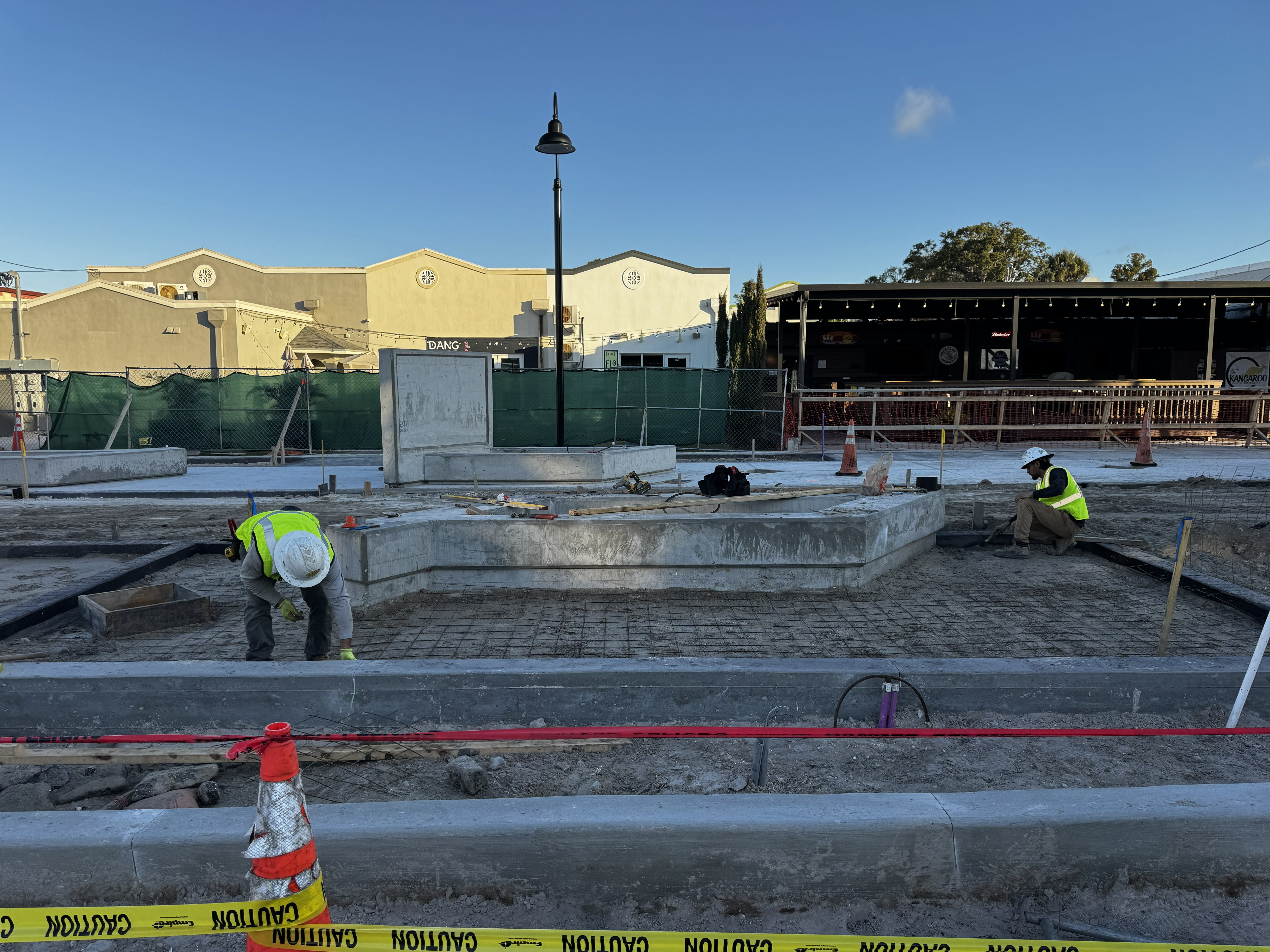 Railroad Square has finished this stageAll concrete planters have been poured, and the electric work has been completed—irrigation work will begin on the planters now.