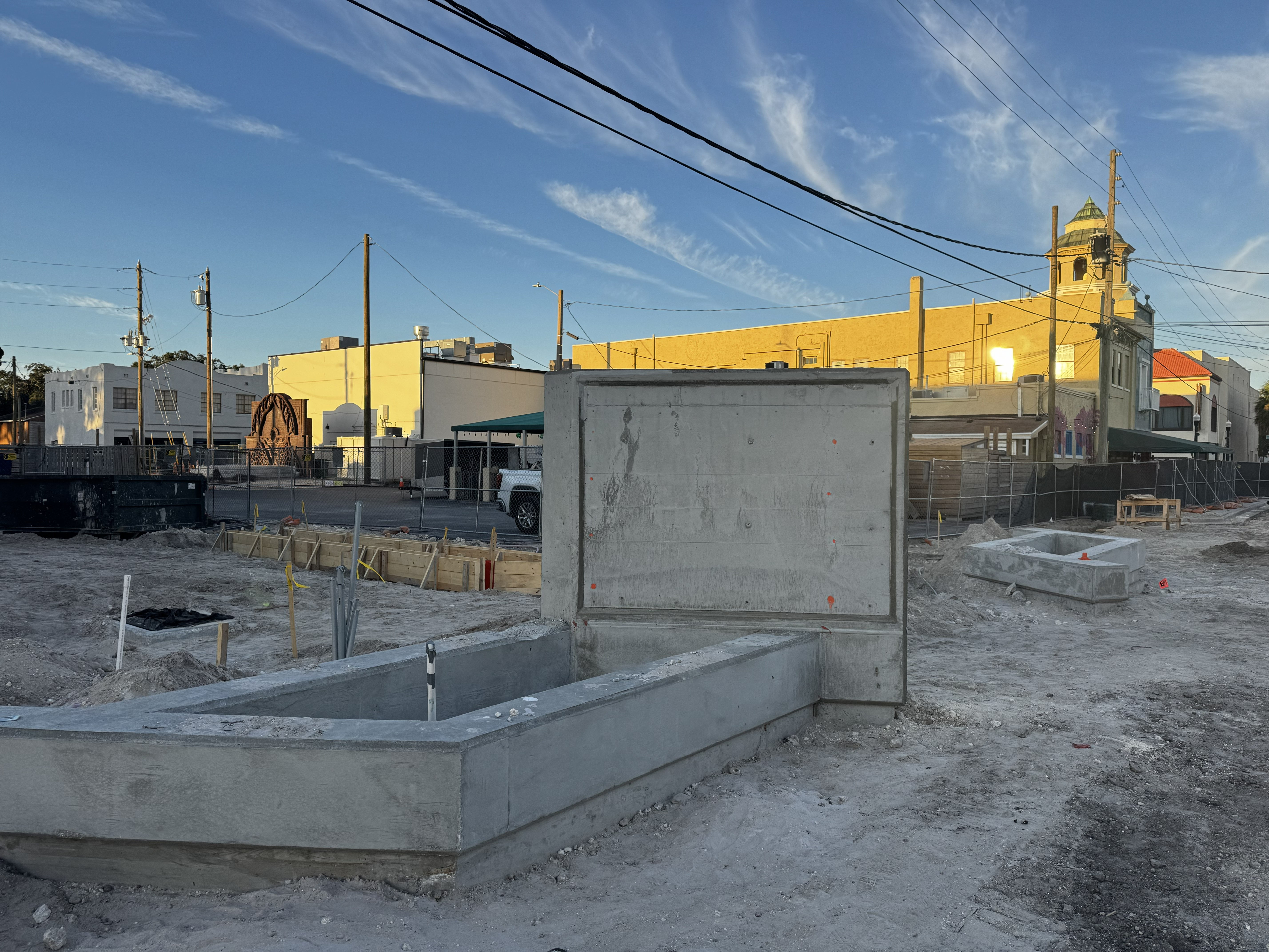 this is an upcoming stage for Railroad SquareCrews have now begun forging the path for the concrete planters along Nebraska Avenue. The foundation for seven planters and four art walls has been set up this past week, and concrete for each will be poured in the upcoming week.