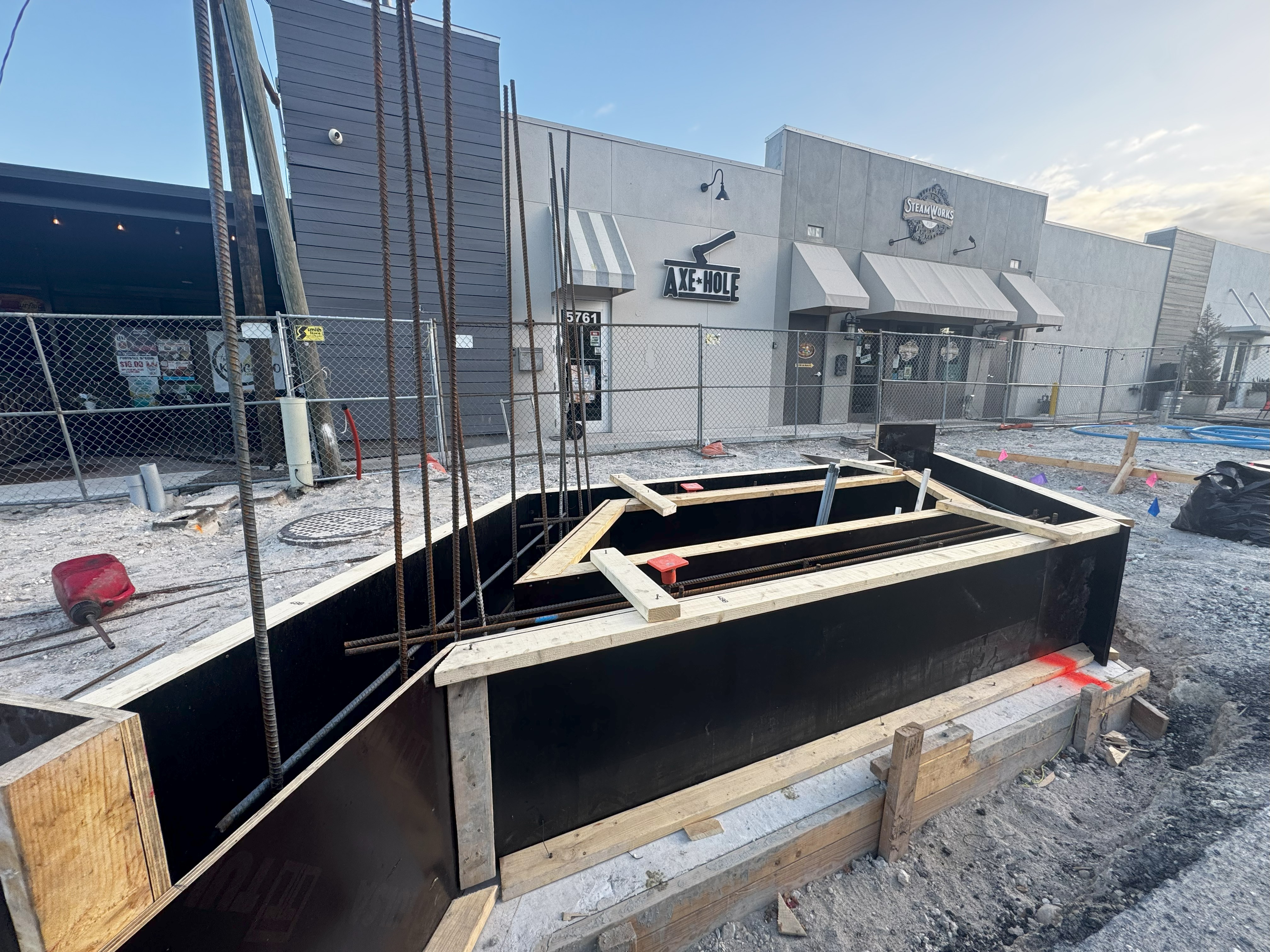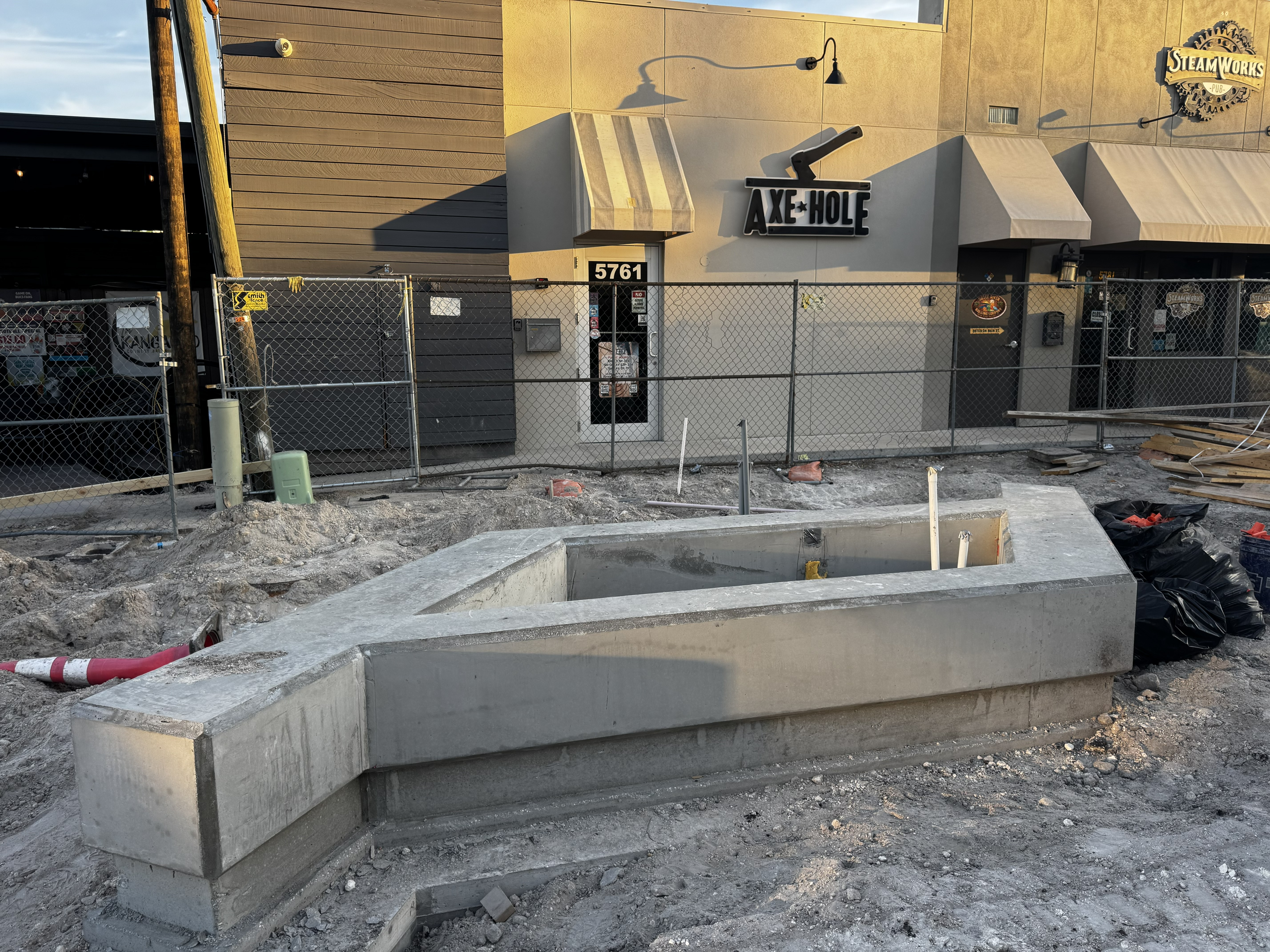 this is an upcoming stage for Railroad SquareAll concrete planters have been poured, and the electric work has been completed—irrigation work will begin on the planters now.